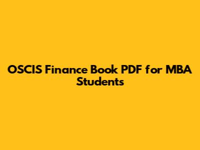 OSCIS Finance Book PDF For MBA Students
