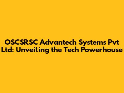 What Exactly Does OSCSRSC Advantech Systems Pvt Ltd Do?