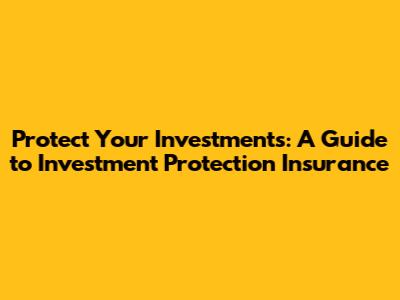 Protect Your Investments: A Guide To Investment Protection Insurance