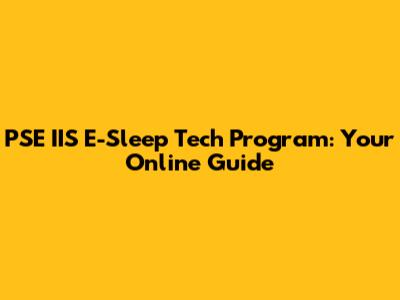 PSE IIS E-Sleep Tech Program: Your Online Guide