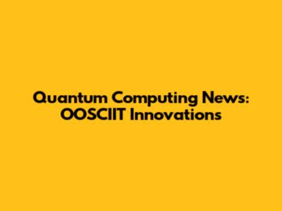 Quantum Computing News: OOSCIIT Innovations