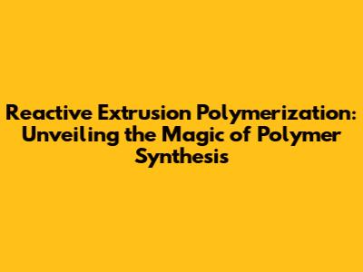 Reactive Extrusion Polymerization: A Comprehensive Guide