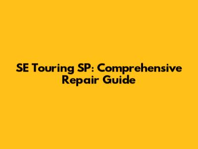 SE Touring SP: Guide To Troubleshooting & Repair