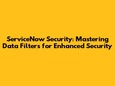 ServiceNow Security: Mastering Data Filters For Enhanced Security