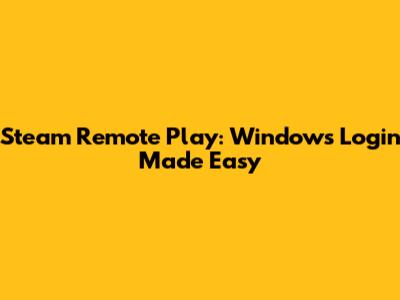 Steam Remote Play: Windows Login Made Easy
