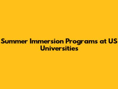 Summer Immersion Programs At US Universities