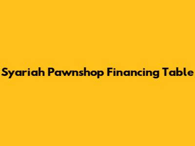 Syariah Pawnshop Financing Table