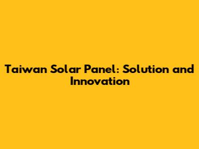 Taiwan Solar Panel: Solution And Innovation