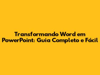 Olá, pessoal! Já precisou transformar aquele documento Word gigante em uma apresentação PowerPoint incrível, mas não sabia por onde começar? Sem problemas, porque hoje vamos desvendar todos os segredos de como converter Word em PowerPoint de forma rápida, eficiente e, o melhor de tudo, sem dor de cabeça! Prepare-se para dominar essa habilidade e impressionar em suas próximas apresentações. Vamos lá?