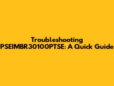Troubleshooting PSEIMBR30100PTSE: A Quick Guide