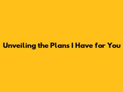 Unveiling The Plans I Have For You