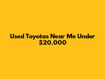 Finding reliable transportation without breaking the bank is a common goal for many car buyers. If you're on the hunt for "used Toyotas near me under $20,000", you're in the right place! Toyotas have a stellar reputation for durability, reliability, and fuel efficiency, making them a smart choice for budget-conscious shoppers. Whether you're a student, a young professional, or simply looking for a dependable second car, a used Toyota can be an excellent option. But with so many choices out there, navigating the used car market can feel overwhelming. This guide will help you find the perfect used Toyota under $20,000 near you, ensuring you drive away with a vehicle that meets your needs and fits your budget. We'll cover everything from popular Toyota models to watch out for, where to find them, and essential tips for inspecting and purchasing a used car. So buckle up and get ready to embark on your used Toyota search! This article will provide all the information you need to feel confident and informed. We'll dive into the specifics of what makes Toyotas such a great choice, discuss the factors that influence pricing, and offer practical advice on how to negotiate the best deal. By the end of this guide, you'll be well-equipped to find a fantastic used Toyota that fits your budget and provides years of reliable service. Remember, the key to a successful used car purchase is research and preparation. Don't rush into a decision – take your time, ask questions, and thoroughly inspect any vehicle you're considering. With a little effort, you can find a gem that will serve you well for years to come. Happy hunting!